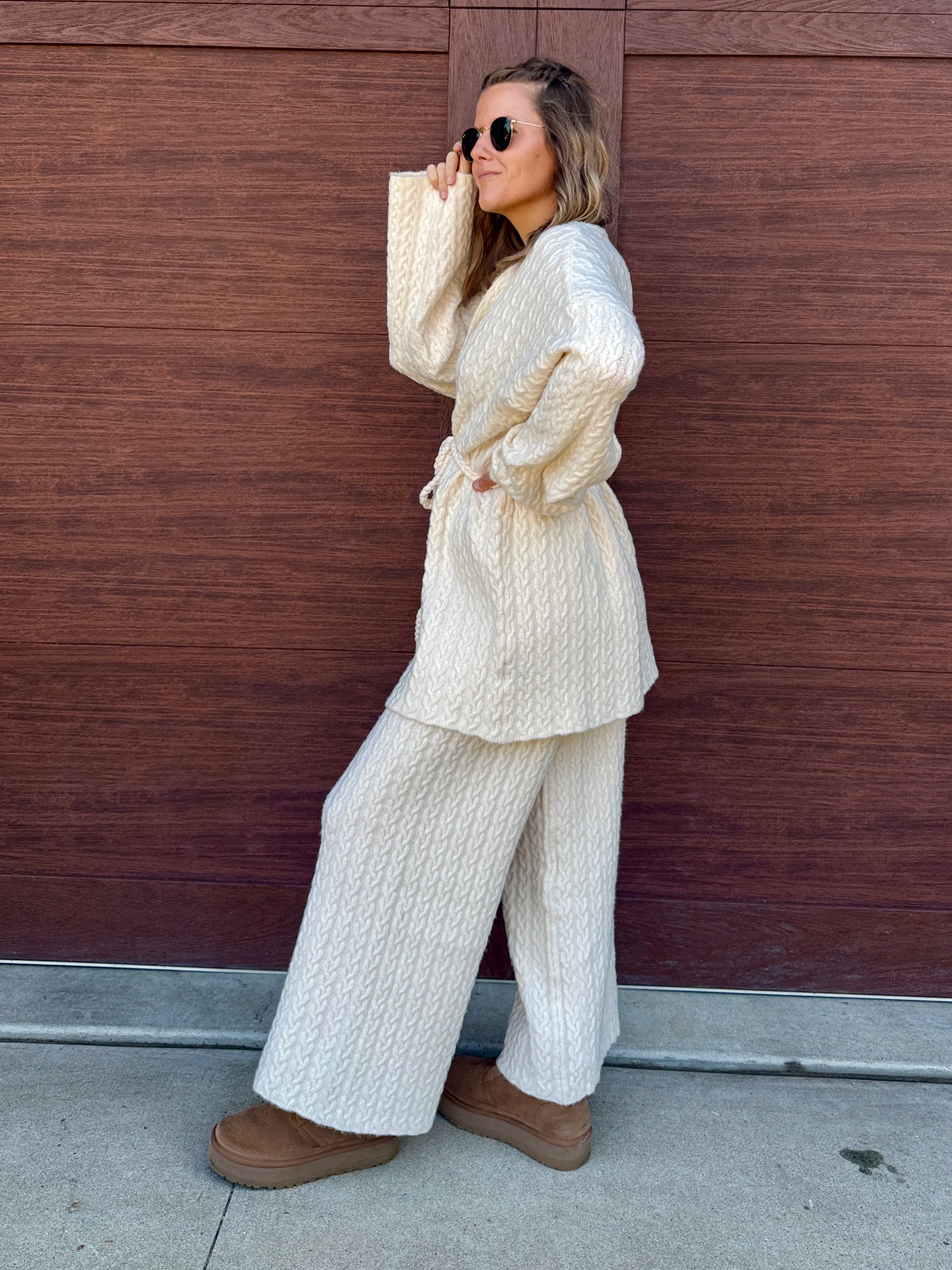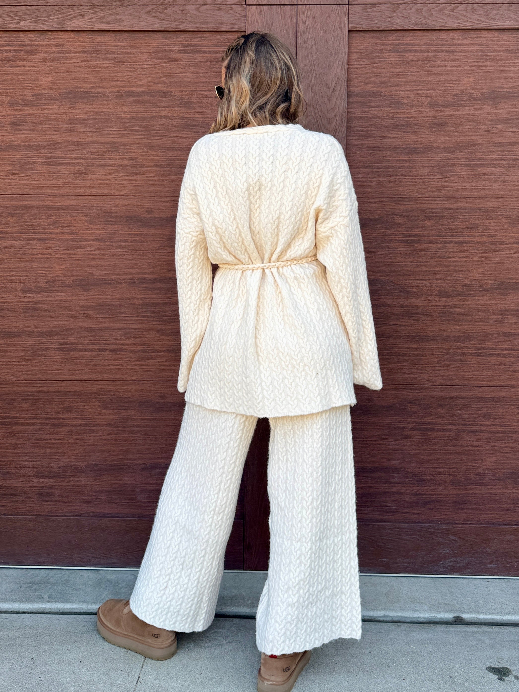 Designed in V-neck long sleeve roomy fit cardigan in acrylic with adjustable drawstring detailing. Top